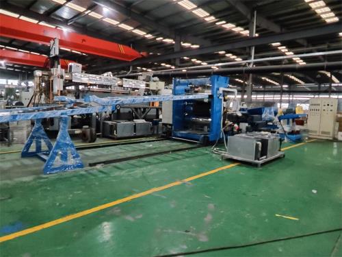 一、系統(tǒng)機(jī)組技術(shù)參數(shù)Ⅰ、機(jī)器顏色:主機(jī)為:公司標(biāo)色;電柜為:電腦色;防護(hù)罩:黃色Ⅱ、擠出工藝:110升混煉機(jī)-——自動(dòng)提升機(jī)——強(qiáng)制喂料機(jī)——150單螺桿擠出機(jī)——液壓板式換網(wǎng)系統(tǒng)-----片材擠出模具----三輥壓光---三輥冷卻系統(tǒng)-----下覆膜裝置----托架冷卻-----冷卻牽引----切邊裝置-----計(jì)米器-----在線剪板機(jī)----輸送帶-----摩擦收卷機(jī)----主機(jī)采用:PLC控制Ⅲ、加工物料:EVA.EPDM.POE隔音氈 要 求:制品寬度:1000mm 制品厚度:1-4mm產(chǎn) 能:700~1000公斤/小時(shí)注意事項(xiàng):取決于客戶的配方、無(wú)鹵阻燃隔音氈生產(chǎn)線工藝、生產(chǎn)條件客戶為何購(gòu)買我們?cè)O(shè)備,我們價(jià)位在行業(yè)屬于中低價(jià)格,我們?cè)O(shè)備能給客戶帶來(lái)哪里利益,我們?cè)O(shè)備能給用戶帶來(lái)以下利益:1.特點(diǎn):這套設(shè)備主機(jī)是環(huán)保型;主機(jī)設(shè)備不需要接外循環(huán)水系統(tǒng);自帶循環(huán)冷卻統(tǒng)是我公司專利產(chǎn)品,2.齒輪箱冷卻采用:采用環(huán)保冷卻系統(tǒng)(環(huán)保型:發(fā)明專利號(hào):CN201911312134.6)