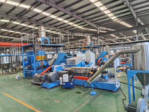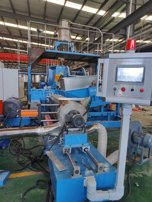 CN201911312134.6)不需要接外循環(huán)水冷卻,不用徘外水;采用閉環(huán)循環(huán)系統(tǒng)密煉單螺桿造粒機(jī)4.節(jié)能:普通筒體筒體冷卻;例如:第5區(qū)溫度超高;這是電子閥導(dǎo)通;第5區(qū)冷卻回水就會(huì)影響第六區(qū)和第四區(qū)的溫度下降;就會(huì)導(dǎo)致第四六區(qū)加溫;這種情況會(huì)一直循環(huán)出現(xiàn);導(dǎo)致電費(fèi)浪費(fèi);我們現(xiàn)在采用環(huán)保型就徹底解決這個(gè)問(wèn)題;加我們委托第三方開(kāi)發(fā)溫控模塊,溫控加熱系統(tǒng)比同類(lèi)設(shè)備節(jié)能:10-20%電費(fèi),就是每噸能為客戶(hù)節(jié)省電費(fèi)10元,每年大概能節(jié)約電費(fèi)3-5萬(wàn)5.減少投資款:3米*3米*2.5米冷卻水池;60立方冷卻水塔及4KW高壓水泵2臺(tái)及管道,10天施工費(fèi)用:能減少固定投資大概:10-12萬(wàn)元左右6.換網(wǎng)器通水冷卻控溫 無(wú)鹵阻燃隔音氈生產(chǎn)線 http://www.cnhoho.com/contents/65/157.html
