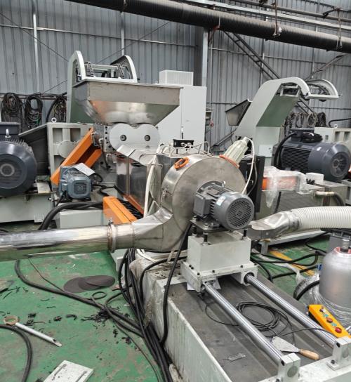 橡膠母粒造粒機(jī)_佳德智能裝備_實(shí)力廠家橡膠母料造粒機(jī)是用于將橡膠母料加工成顆粒狀的設(shè)備,廣泛應(yīng)用于橡膠制品生產(chǎn)行業(yè)。以下是關(guān)于它的詳細(xì)介紹 :- 工作原理:物料經(jīng)密煉后由自動(dòng)提升機(jī)送入雙腕喂料機(jī),雙腕將物料強(qiáng)制均勻加入主機(jī)螺桿。物料在螺桿的壓縮、剪切和外加熱作用下,受到混煉和塑化,溫度和壓力逐步升高,呈粘流狀態(tài),然后以一定壓力通過(guò)機(jī)頭擠出切粒,得到所需形狀的粒子。- 生產(chǎn)流程:通常包括密煉機(jī)、自動(dòng)提升機(jī)、雙腕喂料機(jī)、單螺桿擠出機(jī)、風(fēng)冷模面熱切機(jī)頭、